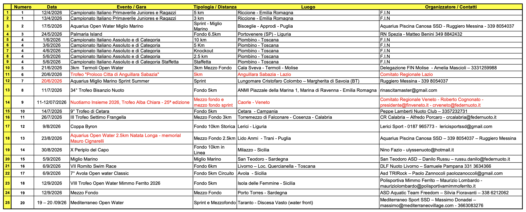 La Federazione Italiana Nuoto ha aggiornato il calendario completo delle gare che comporranno il Grand Prix Italia di nuoto di fondo per la stagione 2025/2026.