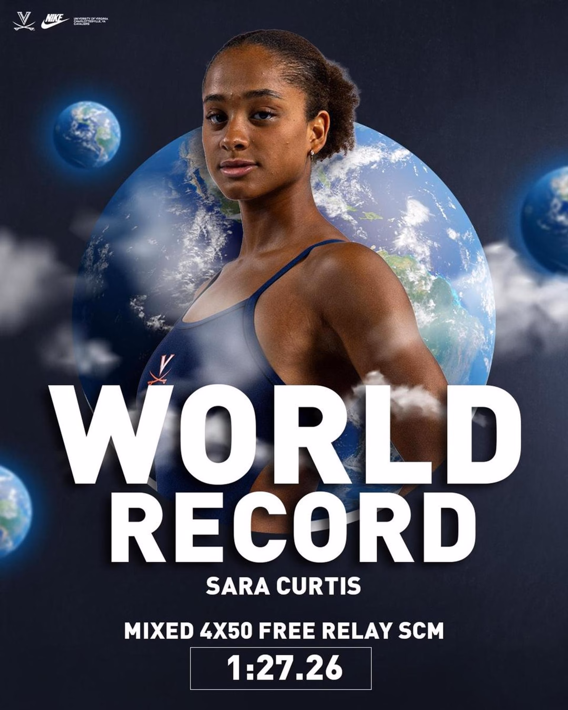 L'università della Virginia celebra il primato del mondo della matricola Sara Curtis.