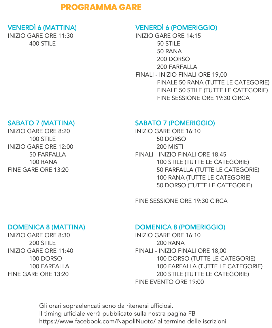 Dal 6 all’8 febbraio 2026, presso il Palatrincone di Pozzuoli, andrà in scena in vasca corta il IV Trofeo Città di Pozzuoli. La manifestazione, organizzata dalla Napoli Nuoto con il patrocinio del Comune di Pozzuoli, vedrà in vasca atleti delle categorie Ragazzi, Juniores, Cadetti e Seniores.
