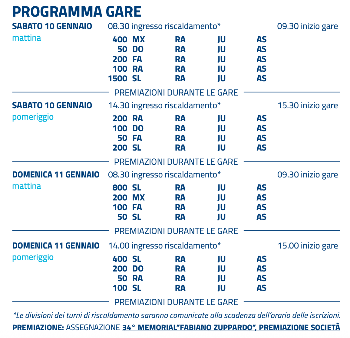 Manifestazione Nazionale riconosciuta ed autorizzata dalla F.I.N., riservata alle categorie: Ragazzi - Juniores - Assoluti (Classifica congiunta per Cadetti e Senior). La competizione si svolgerà nella piscina comunale di via Lago di Varano nei gg. 10/11 Gennaio 2026. Durante tutta la manifestazione sarà utilizzato il cronometraggio elettronico con piastre.