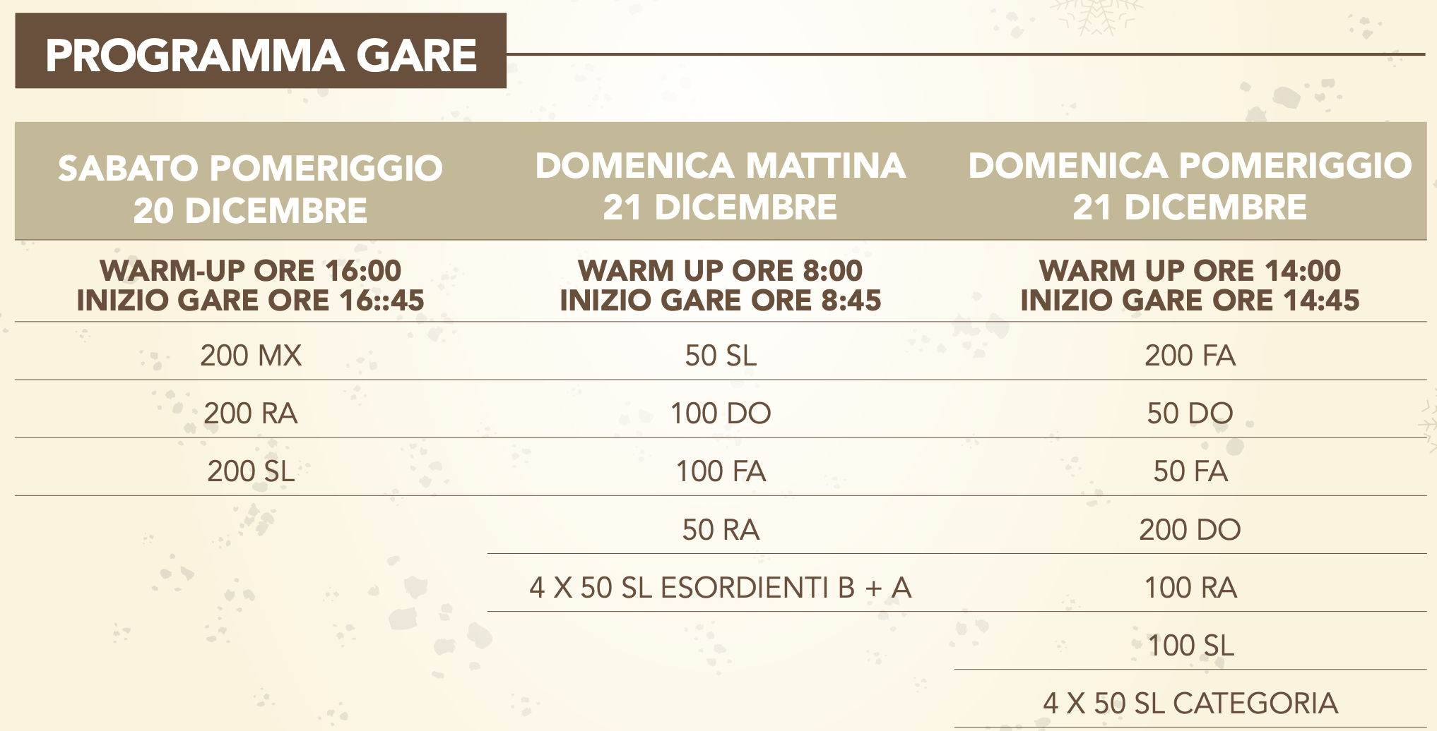 Sporting Lodi organizza la "LAUS CHRISTMAS CUP" gara riservata alle categorie seguenti: Esordienti A – Ragazzi – Unica (juniores/cadetti/seniores) regolarmente tesserati per l’anno 2025-26 alla F.I.N. Federazione Italiana Nuoto. La manifestazione si svolgerà presso il Centro Natatorio Faustina in Via Piermarini a Lodi, vasca da 25 m. – 10 corsie. Cronometraggio elettronico con piastre a cura della F.I.C.R Lombardia.
