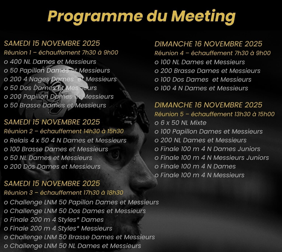 Il 15 e 16 novembre 2025 la città di Lione (Francia) ospiterà il Meeting Internazionale Lyon Natation Métropole presso la Piscine de Lyon Vaise, vasca da 25 metri.
