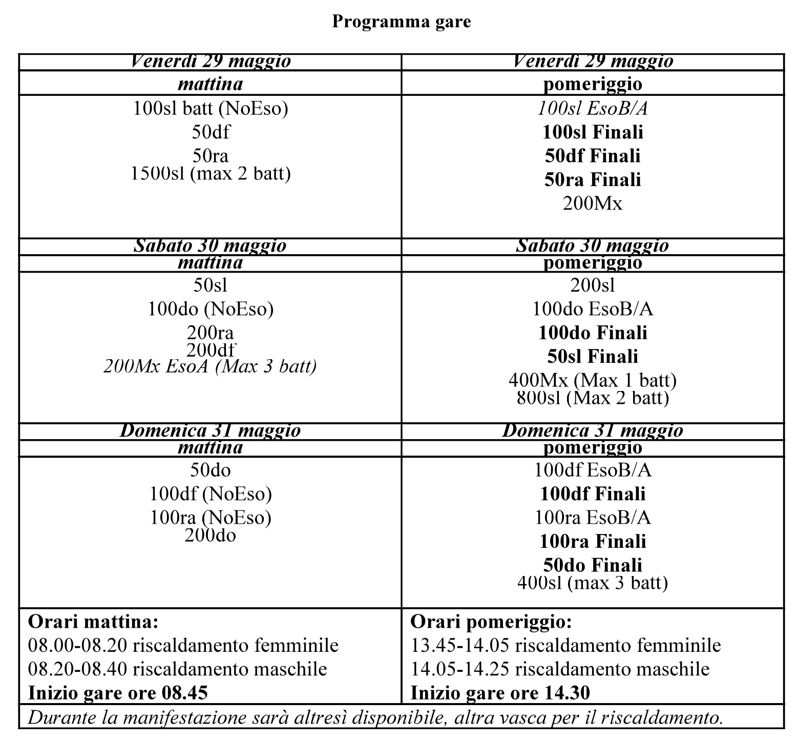 In lunga outdoor dal 29 al 31 maggio 2026 a Pescara.