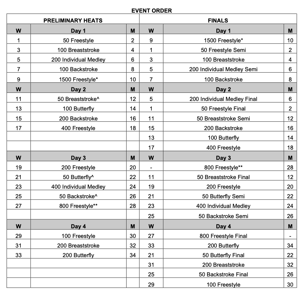 Batterie, semifinali e finali. Al via Leon Marchand, Summer McIntosh, Katie Ledecky, Caeleb Dressel, Maxime Grousset, Daniel Wiffen, Bobby Finke e molti altri BIG del nuoto mondiale. L'elenco iscritti.