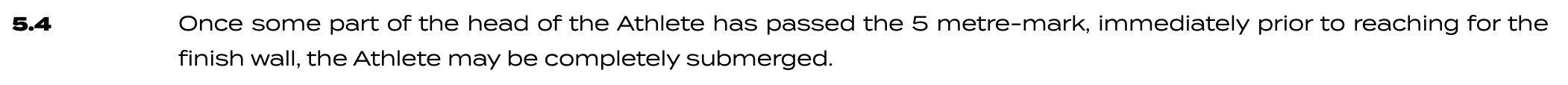 (STILE LIBERO) È consentito che l’atleta sia completamente immerso una volta che la sua testa abbia superato il limite dei 5 metri prima di allungarsi verso la parete d’arrivo.