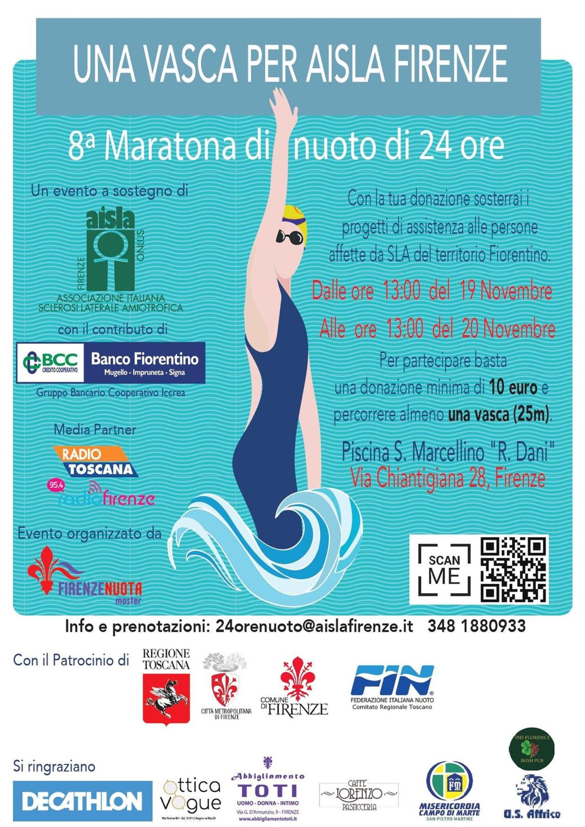 Arriva da Eilat (Israele) un bel messaggio di sostegno alla maratona di nuoto di 24 ore “Una vasca per Aisla Firenze” da uno dei campioni del nuoto e dello sport italiano. In un video pubblicato sui canali social di Aisla Firenze , realizzato dal consigliere Andrea Prayer (presente in qualità di giudice FINA), il campione olimpico azzurro Gregorio Paltrinieri augura grande successo alla maratona di nuoto di 24 ore in programma il 19 e 20 novembre all’impianto San Marcellino dell’U.S. Affrico Firenze. “Grazie Gregorio, per ciò che hai fatto e fai per lo sport, ogni tuo traguardo ci rende orgogliosi, e grazie per questo tuo messaggio che significa vicinanza e sensibilità per le persone con SLA. Un gesto tanto spontaneo quanto bello”, scrivono da Aisla Firenze.