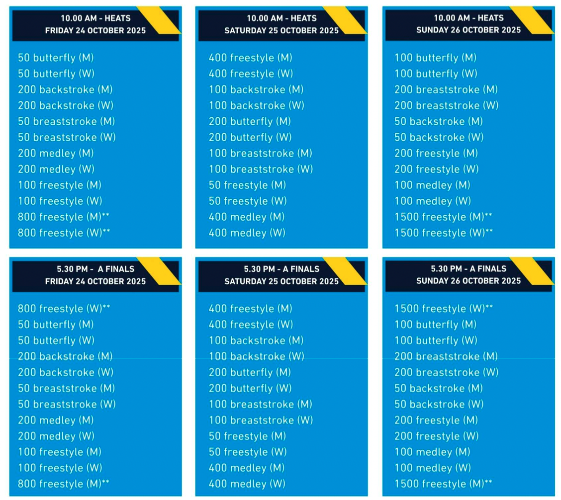 Dal 24 al 26 ottobre 2025 lo Zwemcentrum di Rotterdam ospiterà i Dutch Qualifiers, tappa ufficiale di qualificazione per gli Europei in vasca corta di Lublino (2-7 dicembre 2025). Le gare si svolgeranno in vasca da 25 metri a 10 corsie, con batterie al mattino e finali A e B al pomeriggio. Tra i protagonisti attesi figurano Tessa Giele, Milou van Wijk, Maaike de Waard, Kim Busch, Valerie van Roon, Arno Kamminga, Nyls Korstanje, Kenzo Simons, Renzo Tjon-A-Joe e Sean Niewold. Non saranno presenti Marrit Steenbergen e Caspar Corbeau.