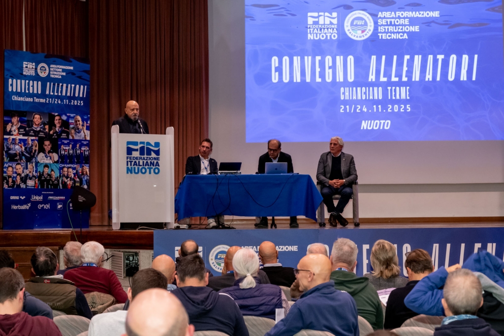 A Chianciano Terme si è conclusa la due giorni del Convegno Nazionale Allenatori – settore nuoto – della Federazione Italiana Nuoto, che ha visto la partecipazione di circa 300 tecnici da tutta Italia. Nella giornata finale è intervenuto anche il presidente federale Paolo Barelli, che dopo gli impegni parlamentari ha raggiunto l’Excelsior per portare il proprio saluto, seguire i lavori e confrontarsi direttamente con allenatori e dirigenti.