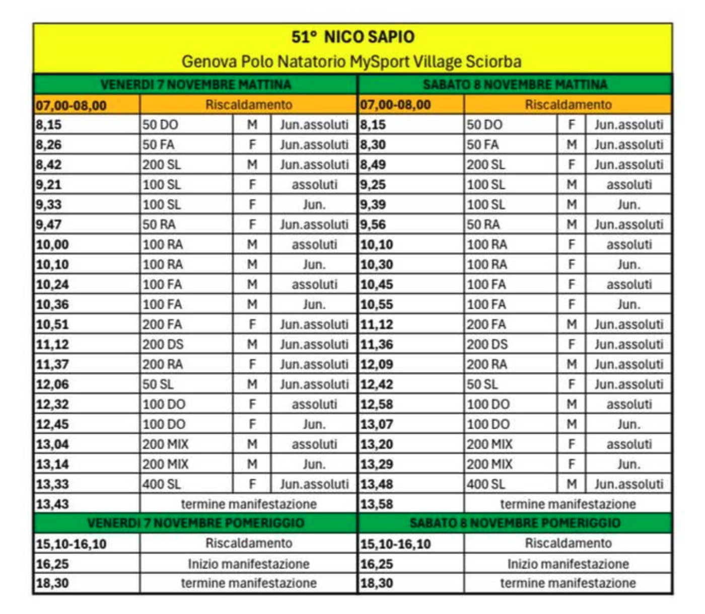 Disponibile la pagina Microplus della 51esima edizione del Trofeo Nico Sapio di Genova, in programma dal 7 al 9 novembre presso la piscina Sciorba di Genova con organizzazione a cura di Genova Nuoto My Sport, nelle prossime ore la startlist della manifestazione.