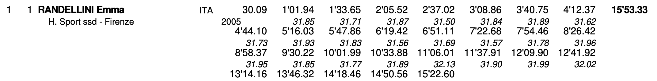 2024: QUADARELLA Simona (Circolo Canottieri Aniene) - 15'33.4