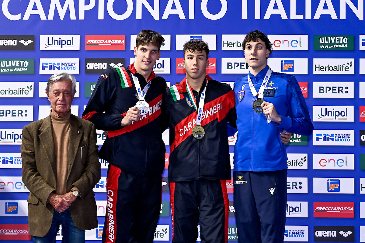 Il giovane Alessandro Ragaini (Centro Sp.vo Carabinieri / Team Marche) torna protagonista aggiudicandosi il titolo tricolore dei 400 stile libero nuotando per la la prima volta la distanza sotto il muro dei 3’40 (3’39”74). argento per Matteo Lamberti (Centro Sp.vo Carabinieri / GAM Team Brescia) co 3.40.87 e bronzo a Davide Marchello (Centro Sportivo Esercito / Aurelia Nuoto) con 3.41.68.