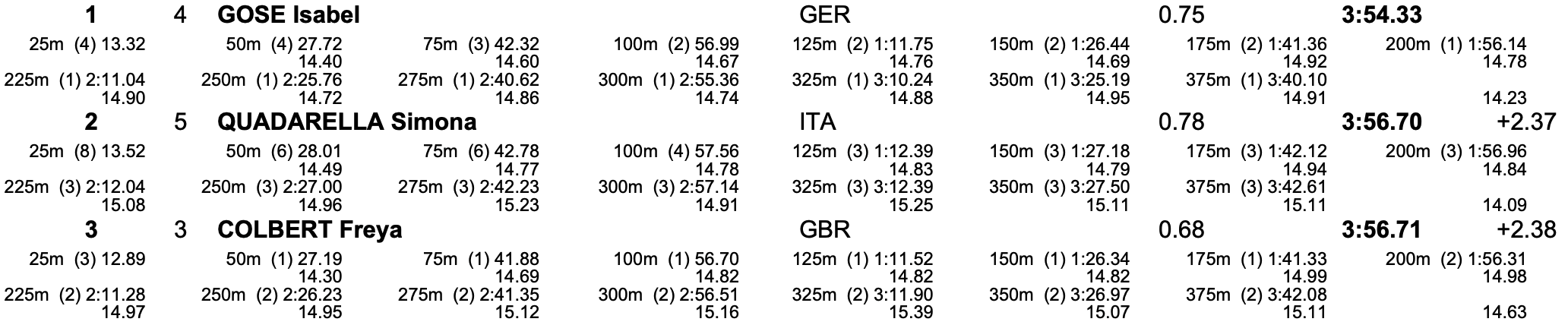 - Freya Colbert (GBR) – 3:56.71