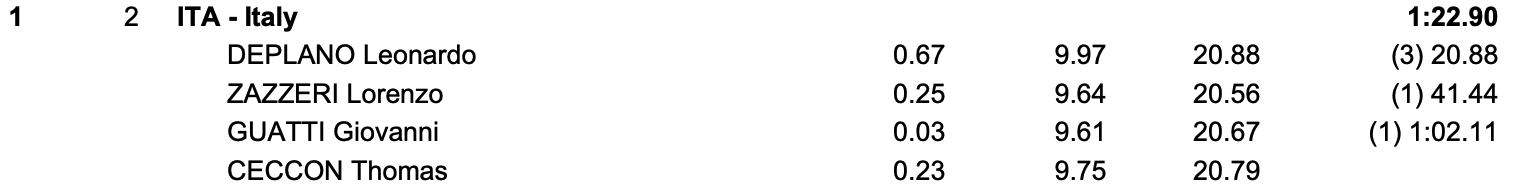 - 4×50 SL U - ITALIA – 1'22"90 =RI