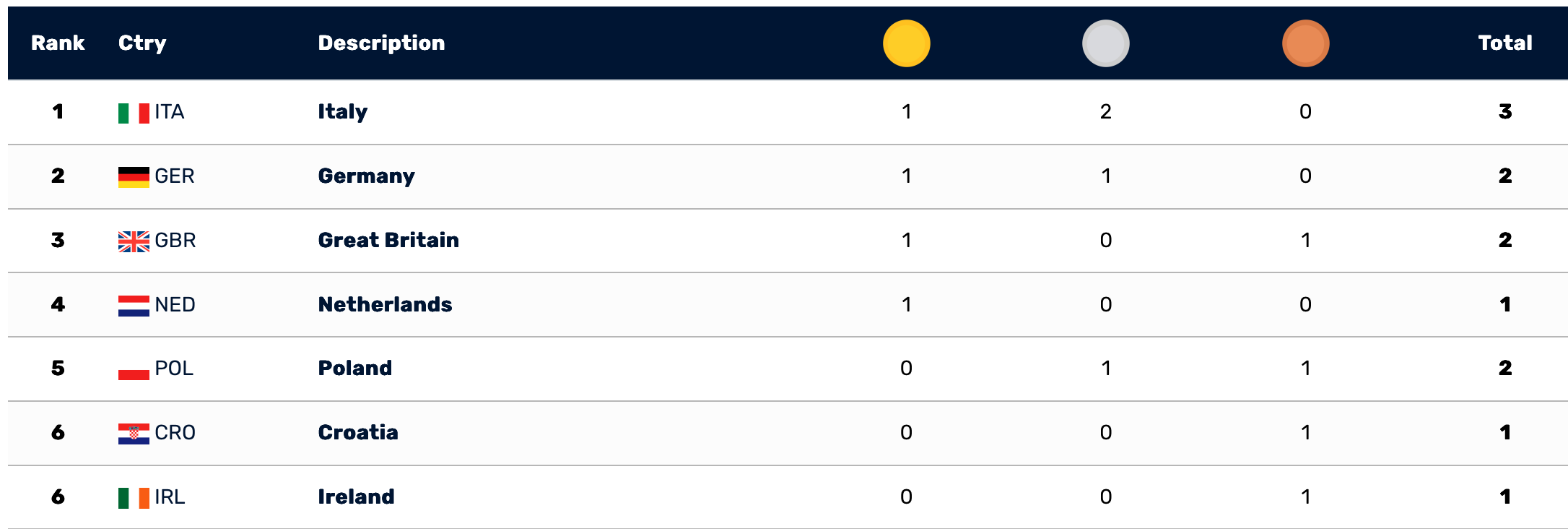 MEDAGLIERE ITALIA