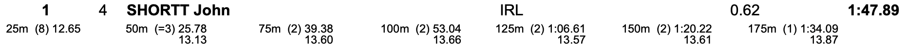 - 200 DO U - John Shortt (IRL) – 1:47.89 WRJ