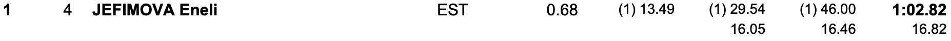 - Eneli Jefimova (EST) – 1:02.82