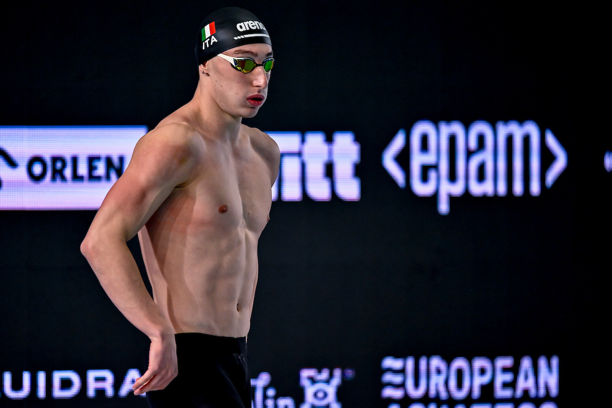 Ottima gestione di gara per il torinese Gabriele Mancini, che chiude la sua batteria dei 200 rana in terza posizione (2.04.32), riscontro cronometrico che le vale il settimo tempo complessivo, per quella che sarà la sua prima finale europea. Attimi di brivido con la sua corsia sotto osservazione della video room per una possibile squalifica, poi rientrata completamente. Primo escluso dalla finale Nicolò Martinenghi per soli 14 centesimi di troppo (2.04.46).