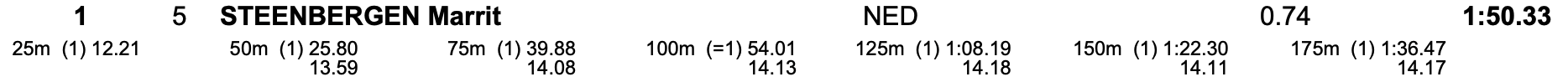 Doppio ER 100 misti - 200 stile libero per Marrit Steenbergen. Mancini, Ceccon, Mora, Stefanì e Busa in finale.