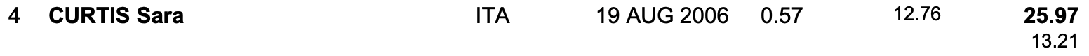 BATTERIE DAY 5. Pronti, via, l'azzurra Sara Curtis (Esercito / CS Roero) stampa il nuovo primato italiano dei 50 dorso (25.97), prima italiana sotto i 26 secondi e migliore tempo d'accesso per le semifinalI.