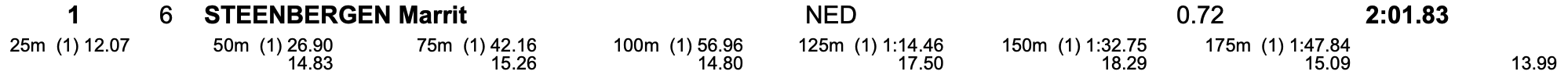Europeo V25. DAY 5 PM. Gare in corso ... Alberto Razzetti d'argento. ER Marrit Steenbergen: 200 misti (2.01.83)