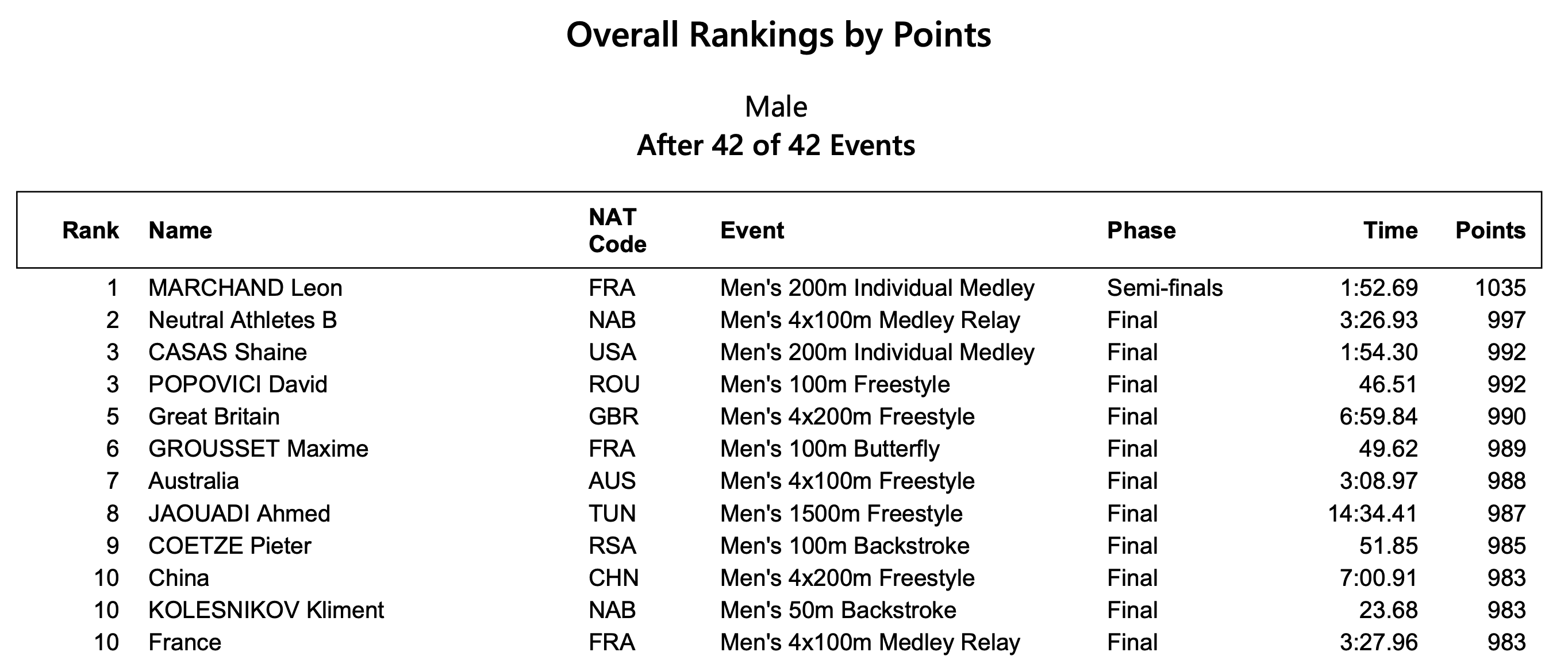 - 400 misti uomini - Leon Marchand (FRA) – 4:04.73