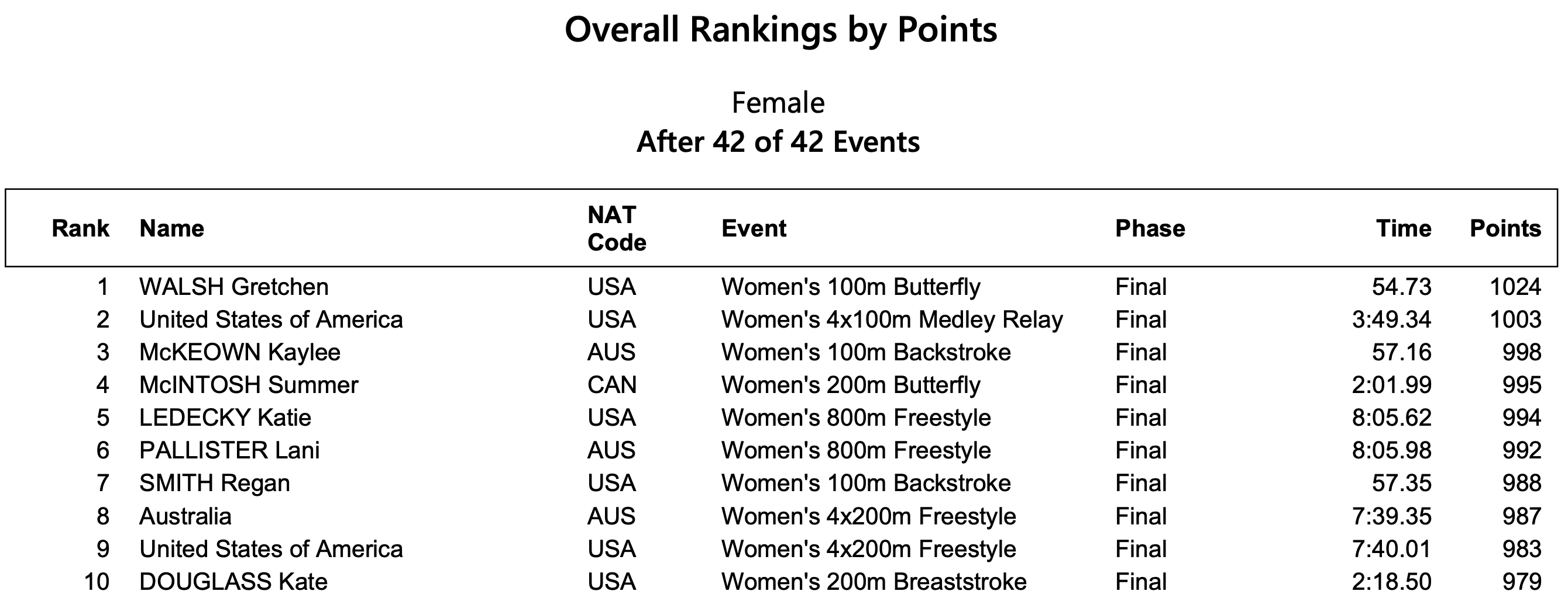 - 100 farfalla donne - Gretchen Walsh (USA) – 54.73