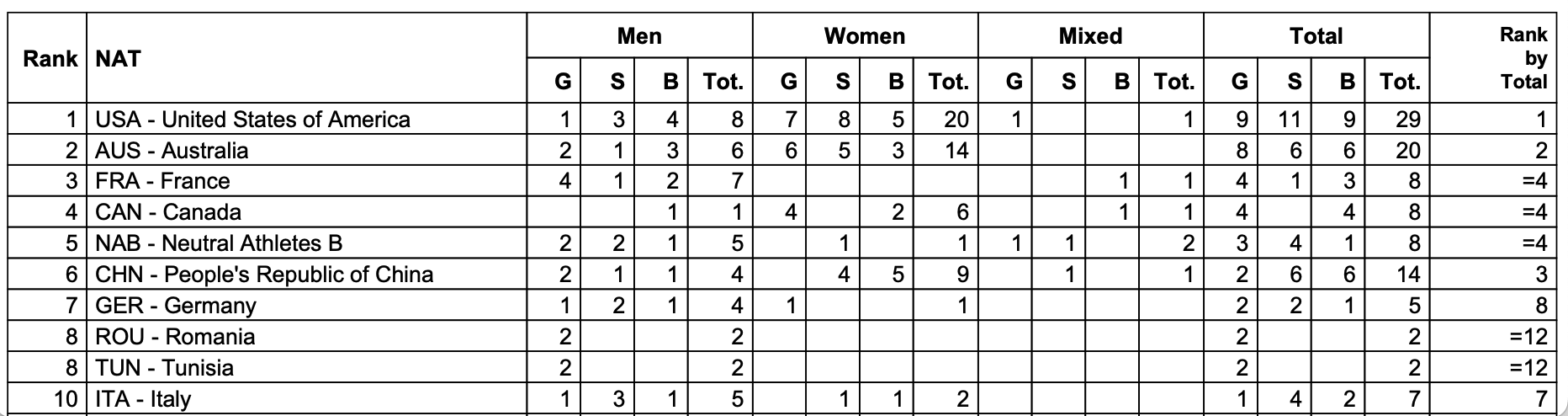 - MEDAGLIERE PER NAZIONI - TOP 10