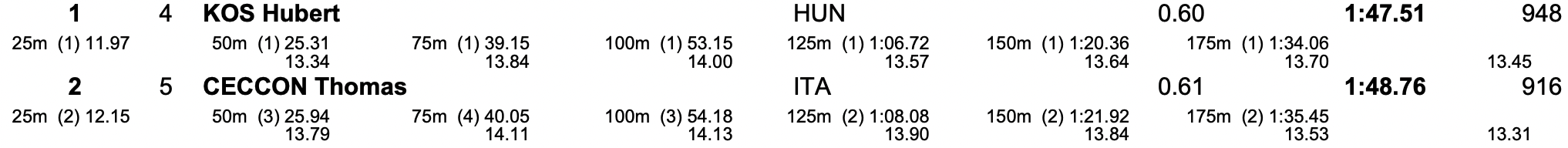 - 200 Misti Uomini - Shaine Casas (USA) – 1:49.43, 8) Razzetti 1.56.26