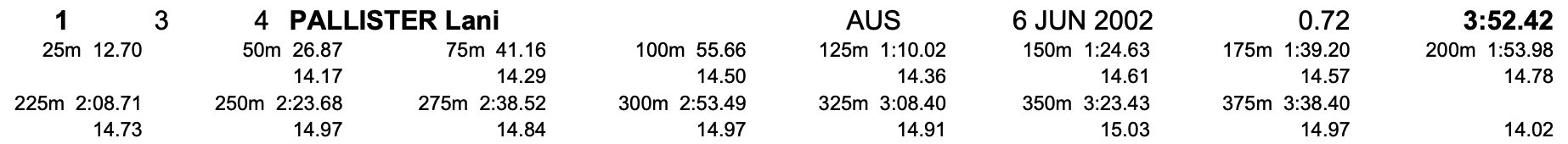 - 400 Stile Libero Donne - Lani Pallister (AUS) – 3:52.42