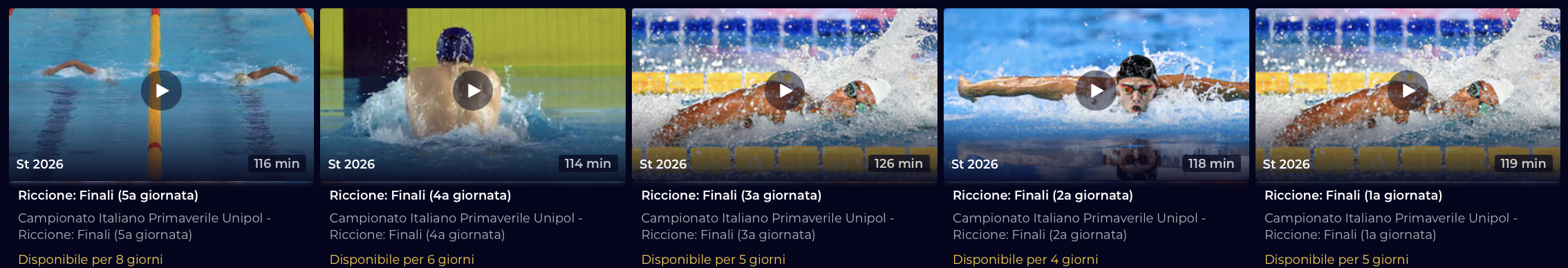 Riguarda su Raiplay le cinque giornate di gara del Campionato Italiano Assoluto Unipol di Riccione con la cronaca di Tommaso Mecarozzi, il commento tecnico di Luca Sacchi e la mixed zone con Elisabetta Caporale.