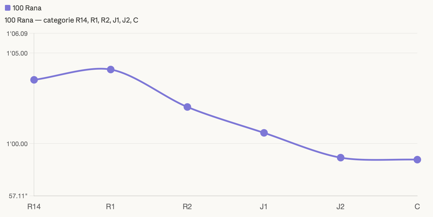 Evoluzione dei tempi delle vincitrici nelle 6 annate di ciascuna specialità.