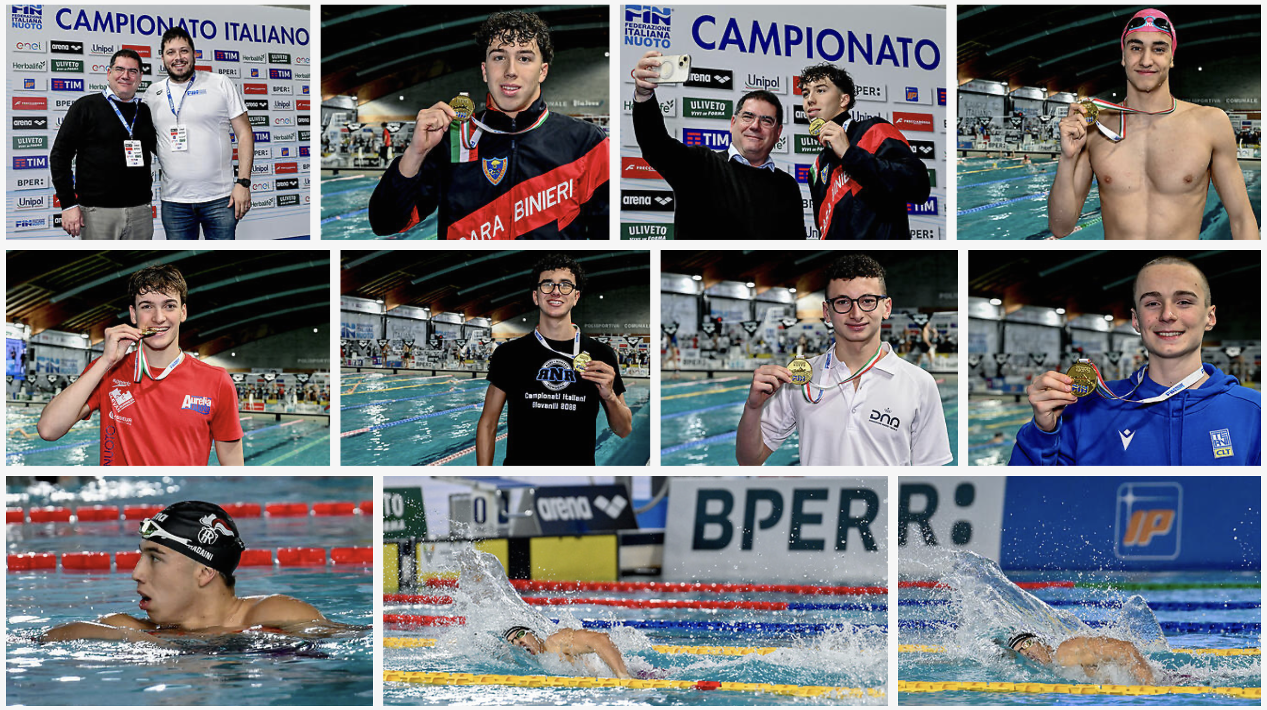 VINCITORI. 400 STILE LIBERO R14 - BONCIO Cesare (Pol.Circ.Lavoratori Terni) 4'03.85, 400 STILE LIBERO R1 - CASTELLANI Andrea (ASD Dimensione Nuoto L'Aquila) 3'58.77, 400 STILE LIBERO R2 - DE ARMAS PORFIDIO Fabio (Rari Nantes Romagna asd) 3'53.76, 400 STILE LIBERO J1 - ACAMPORA Alessandro (Aurelia Nuoto asd) 3'46.35, 400 STILE LIBERO J2 - VOLPE Francesco (C.S. Portici asd) 3'41.50, 400 STILE LIBERO C - RAGAINI Alessandro (CS Carabinieri - ssd Team Marche) 3'40.19, 50 FARFALLA R14 - GRANATIERO Luca Ugo (Acsd Pentotary - Foggia) 26.15, 50 FARFALLA R1 - ZANAROTTO Riccardo (PadovaNuoto) 24.88, 50 FARFALLA R2 - CECCONI Francesco (Aurelia Nuoto asd) 24.25, 50 FARFALLA J1 - GUARISE Pietro (Leosport Nice Footwear) 24.16, 50 FARFALLA J2 - CEOLIN Francesco (Team Veneto asd) 23.16, 50 FARFALLA C - MOMONI Daniele (GS Fiamme Oro - Aurelia Nuoto asd) 22.79. PH: DeepBlueMedia