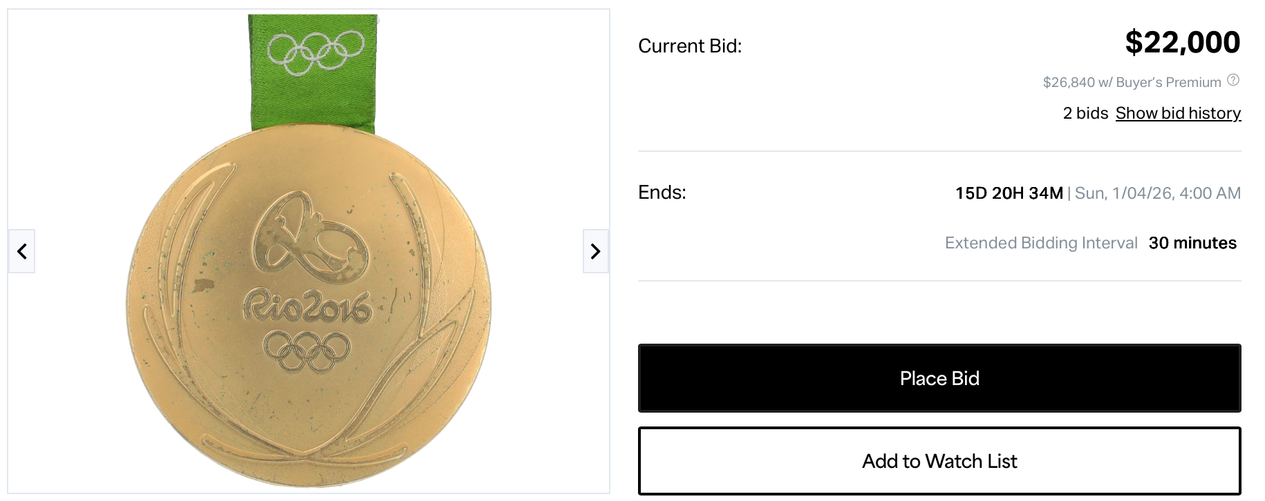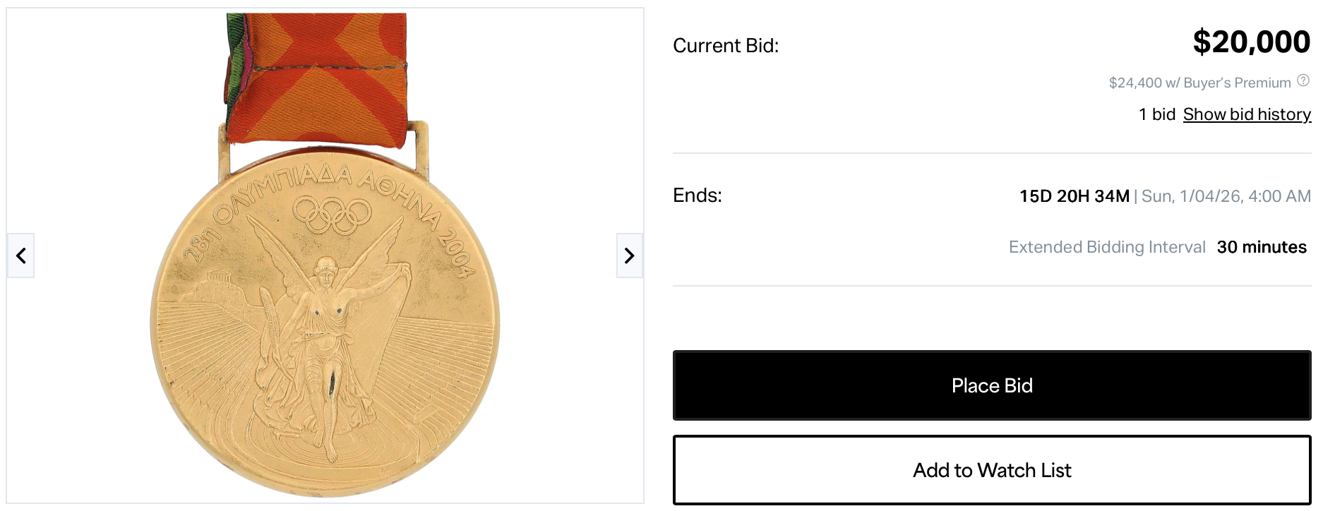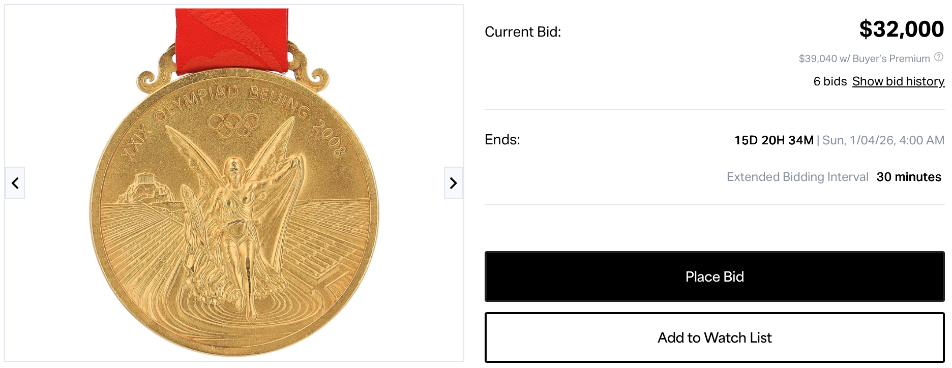 L'asta "December Elite" è iniziata il 10 dicembre 2025 e chiuderà il 3 gennaio 2026. La medaglia del 2008 ha già raggiunto un'offerta di 32.000 dollari.