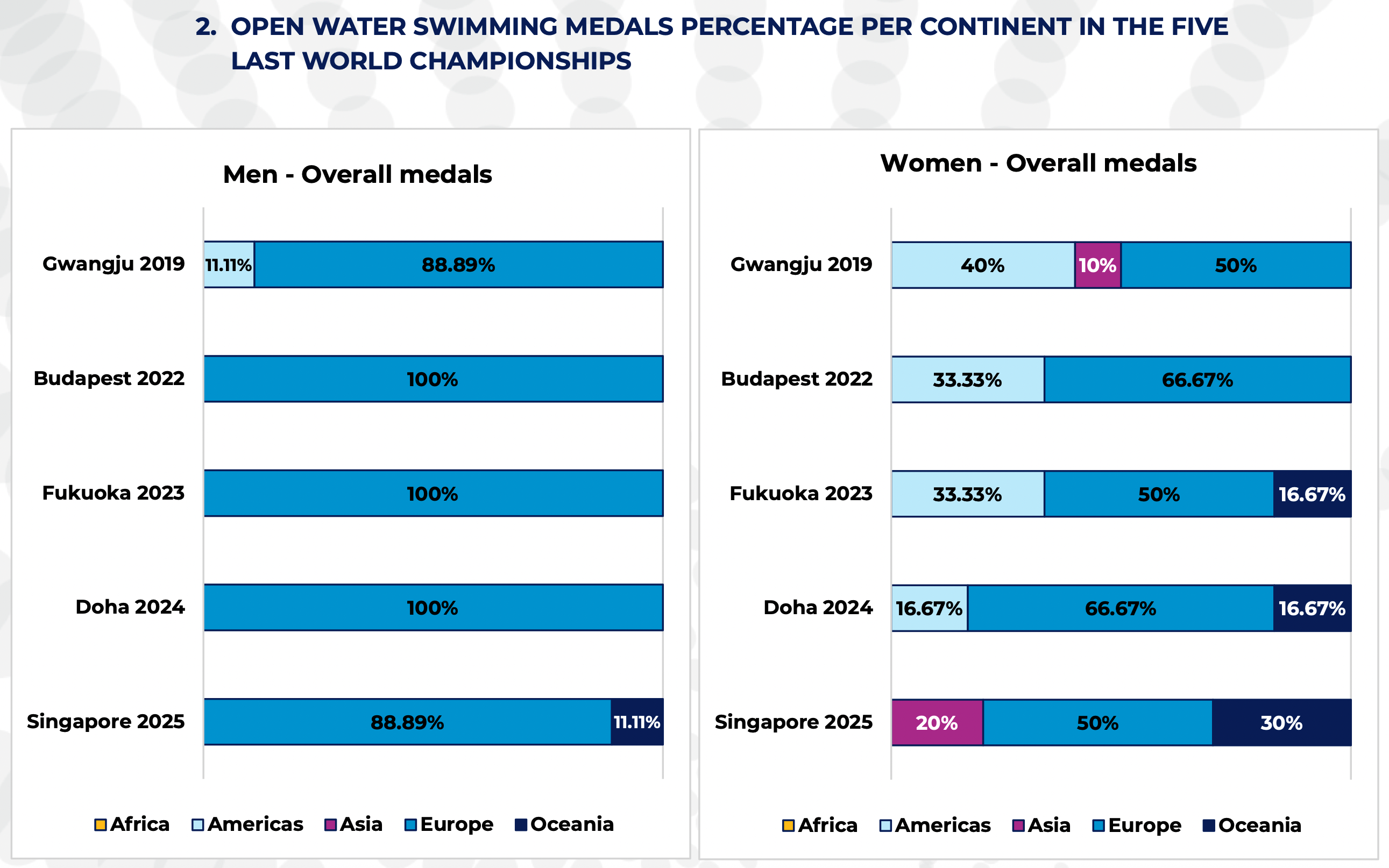World Aquatics ha pubblicato il report sui Mondiali di Singapore 2025, analizzando i risultati delle 77 gare a medaglia e mettendo in evidenza numeri, tendenze e confronti con le edizioni precedenti. I primi dossier riguardano il nuoto in acque libere e il nuoto artistico, mentre a breve seguiranno quelli su nuoto, tuffi, pallanuoto e high diving.
