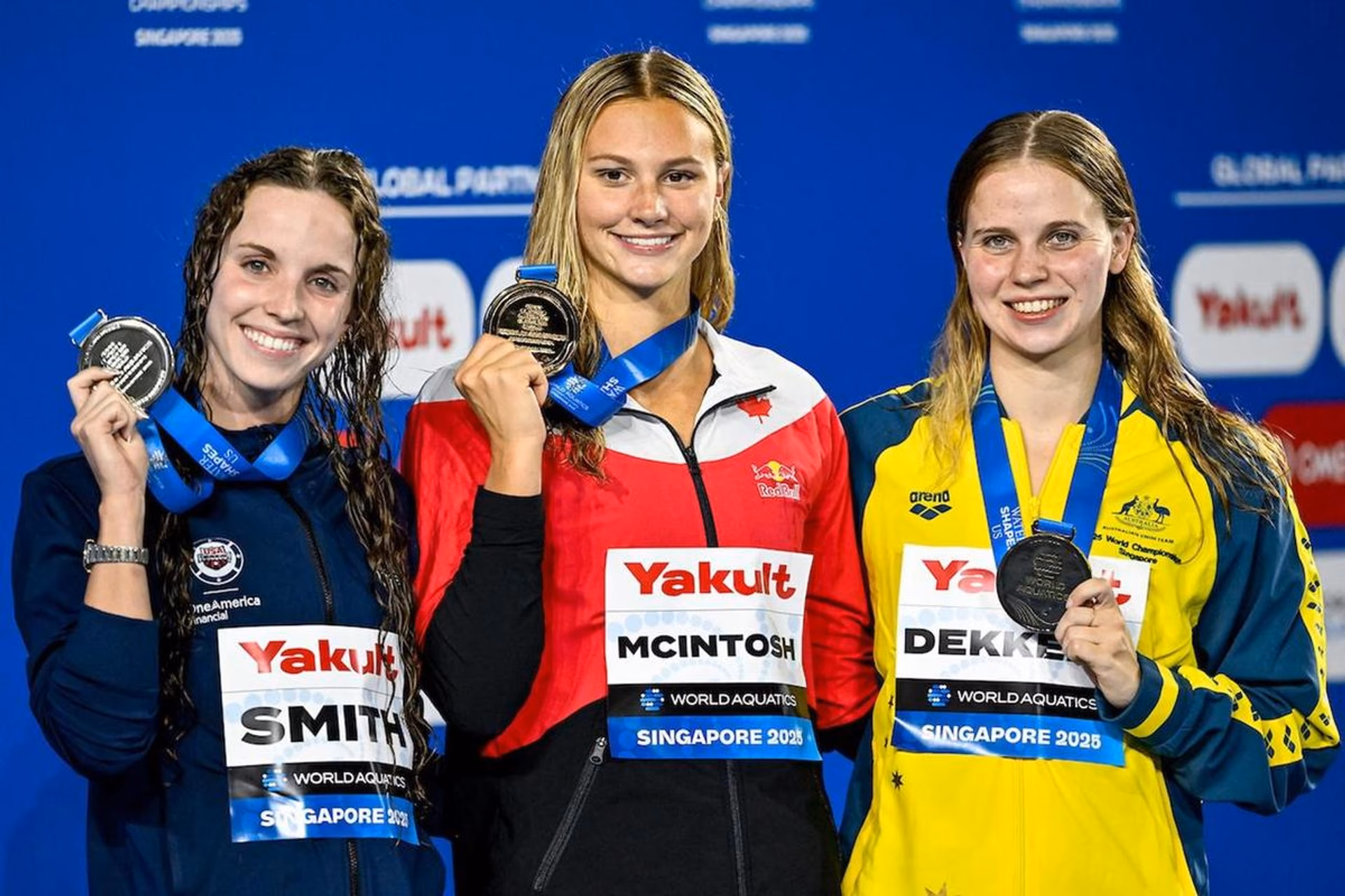 La canadese ha firmato un’annata storica, segnata da tre record mondiali, quattro titoli iridati ai Mondiali di Singapore e da una continuità di rendimento che la consacra come punto di riferimento del nuoto femminile internazionale. Nei giorni scorsi ha ricevuto il premio di “Atleta dell’Anno” dalla stampa canadese e, ieri, anche il prestigioso riconoscimento del quotidiano L’Équipe, che l’ha eletta Championne des Championnes Monde 2025, titolo assegnato allo sportivo – francese o straniero – autore dei migliori risultati sportivi dell’anno.