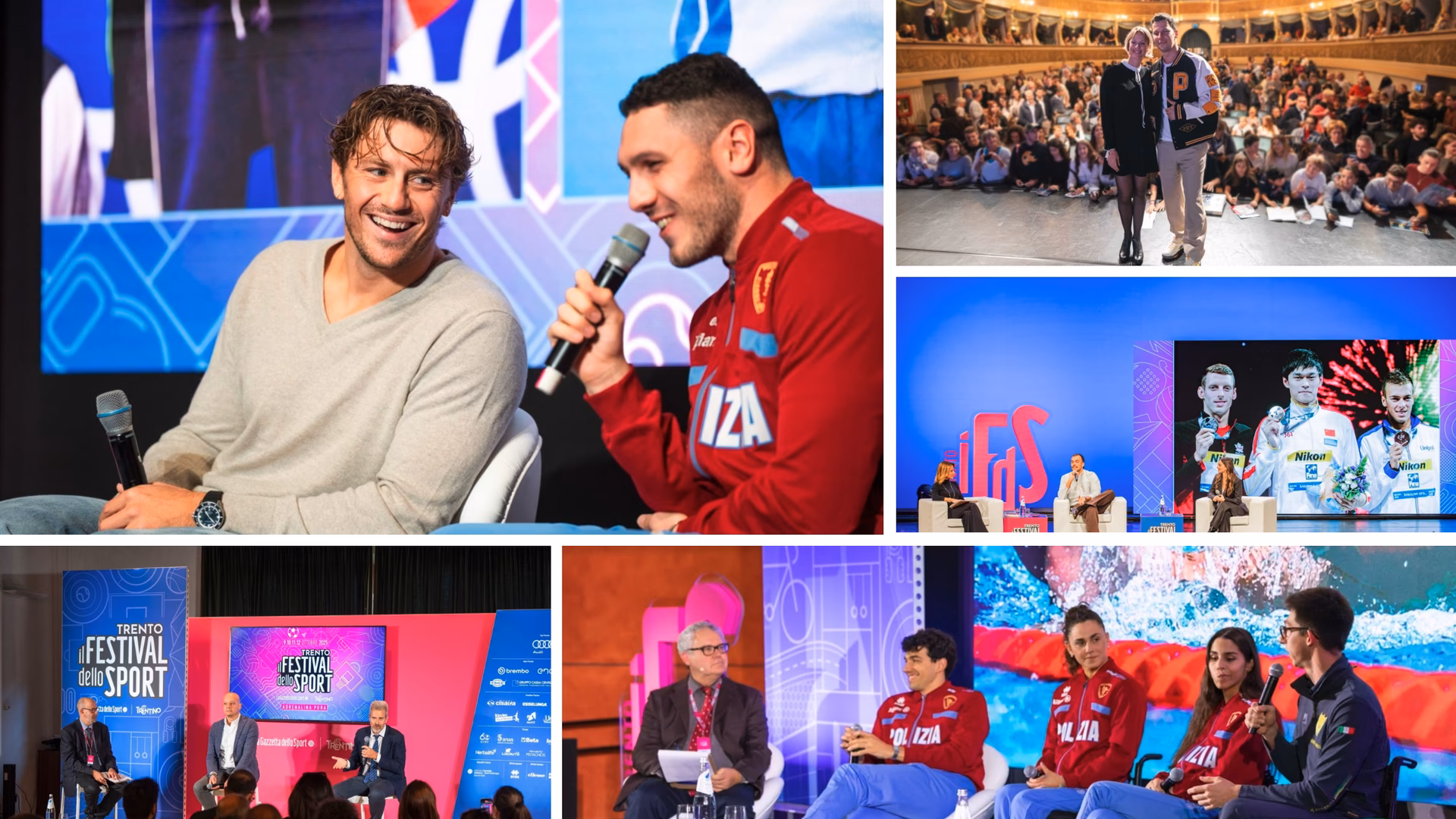 Tanto nuoto di scena nel fine settimana all’ottava edizione del Festival dello Sport. Per gli abbonati della Gazzetta è possibile rivedere alcuni degli interventi, sono disponiibili le gallerie immagini di tutti gli incontri; Simone Barlaam, Giulia Ghiretti, Domiziana Mecenate e Alberto Amodeo del 9 ottobre, poi quelli di sabato 11 ottobre con l'iridato Simone Cerasuolo e l’olimpionico Nicolò Martinenghi, la divina Federica Pellegrini con l'allenatore Matteo Giunta, ed infine ieri - domenica 12 ottobre - con Gregorio Paltrinieri e Domenico Fioravanti.