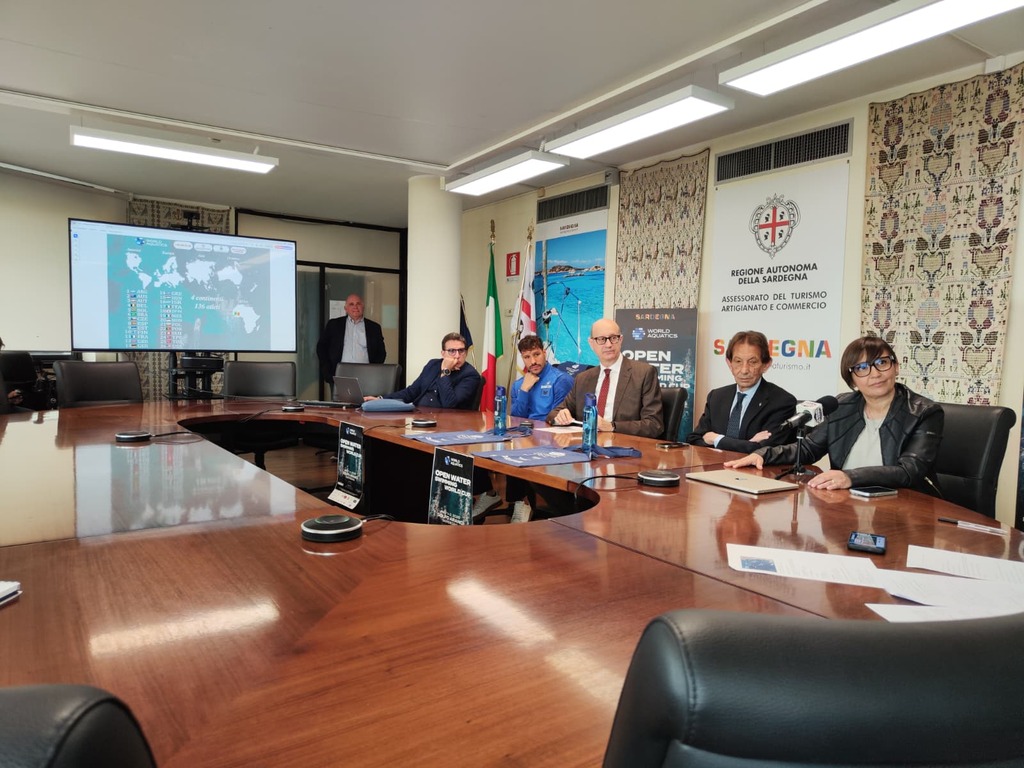 Questa mattina a Cagliari si è tenuta la conferenza stampa di presentazione della tappa di Coppa del Mondo di nuoto in acque libere prevista a Golfo Aranci il primo e il 2 maggio 2026.