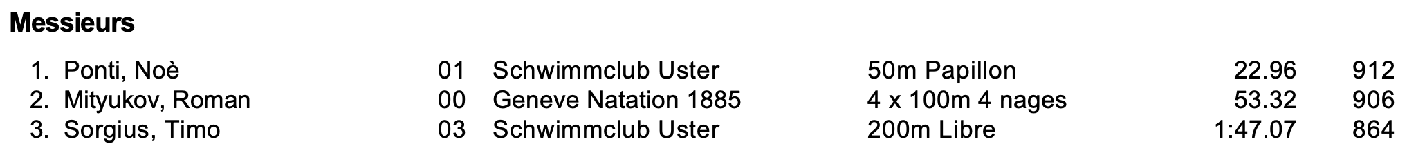 Conclusa la prima giornata di gare dei Campionati svizzeri in vasca lunga, appuntamento chiave per i migliori nuotatori del Paese in vista degli Europei di Parigi e delle principali rassegne giovanili internazionali. Le migliori prestazioni tecnicche del giorno sono state nuotate da Noe Ponti nei 50 farfalla con il tempo di 22.96 e da Roman Mityukov che eguaglia il primato nazionale dei 100 dorso in prima frazione di staffetta (53.32). ,