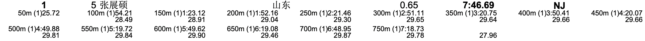 - 800 SL U - Zhang Zhanshuo 7:46.69 RNJ