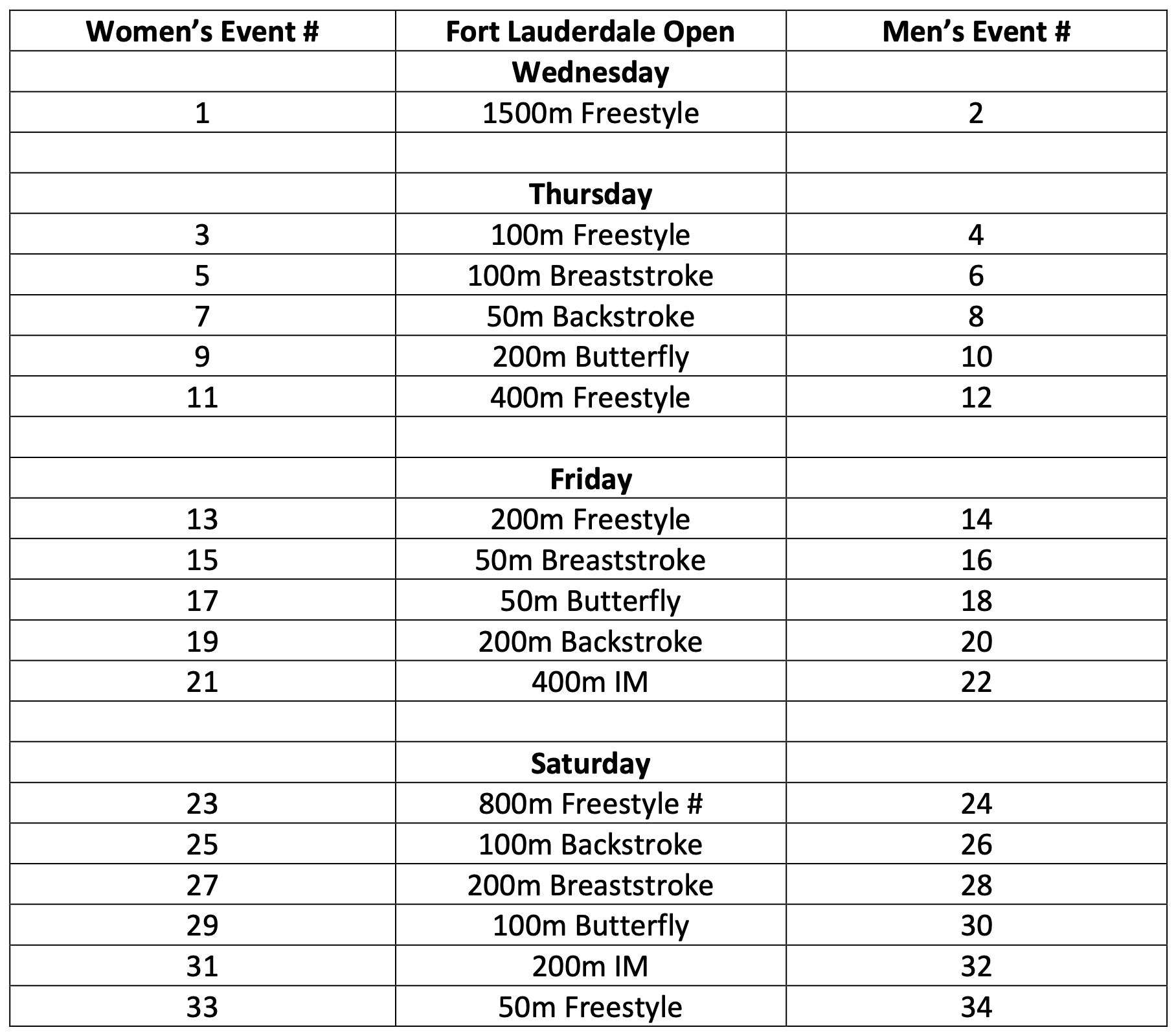 Parata di stelle del nuoto mondiale per il Fort Lauderdale Open 2026 in programma presso il Fort Lauderdale Aquatic Center (Florida, USA) dal 29 aprile al 2 maggio 2026. L’evento è organizzato da Swim Fort Lauderdale, con il patrocinio di USA Swimming e della federazione locale Florida Gold Coast, e rappresenta uno dei meeting internazionali più competitivi del calendario primaverile nordamericano.