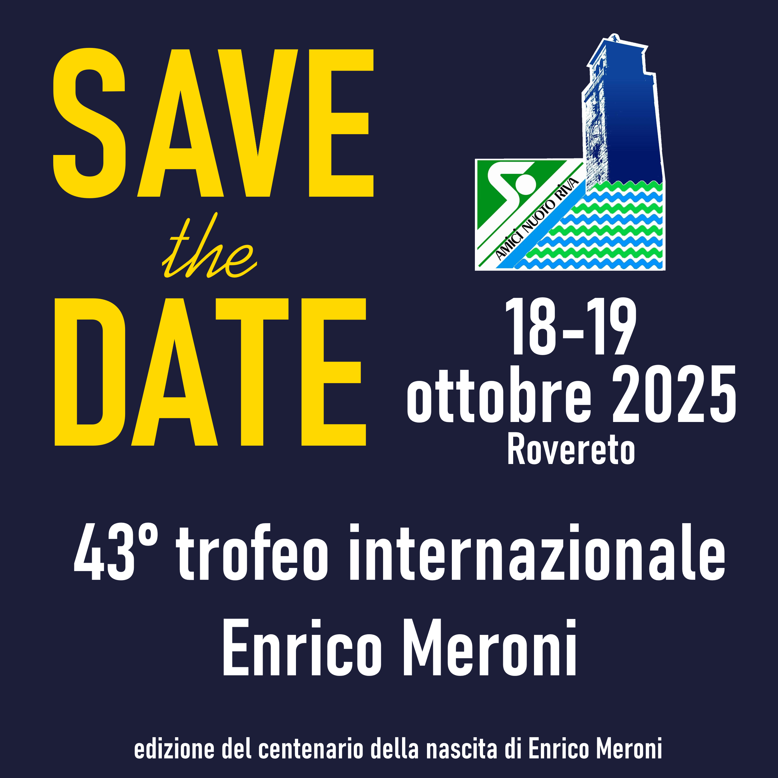 È disponibile la startlist del 43° Trofeo Internazionale “Enrico Meroni” - 42ª Coppa Sprinters “Amici Nuoto Riva” che si terrà in vasca corta presso il Centro Natatorio Comunale di Rovereto il 18 e 19 ottobre 2025 con organizzazione a cura di Amici Nuoto Riva in collaborazione con Leno 2001. Manifestazione internazionale inserita nel calendario European Aquatics, con la partecipazione di club italiani e stranieri. L’edizione 2025 celebrerà il centenario della nascita di Enrico Meroni, a cui è intitolato il Trofeo.