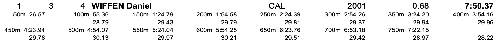 Vincitori: Daniel Wiffen, Skyler Smith, Mathias Van, Claire Weinstein, Ryan Erisman, Summer McIntosh, Leon Marchand.