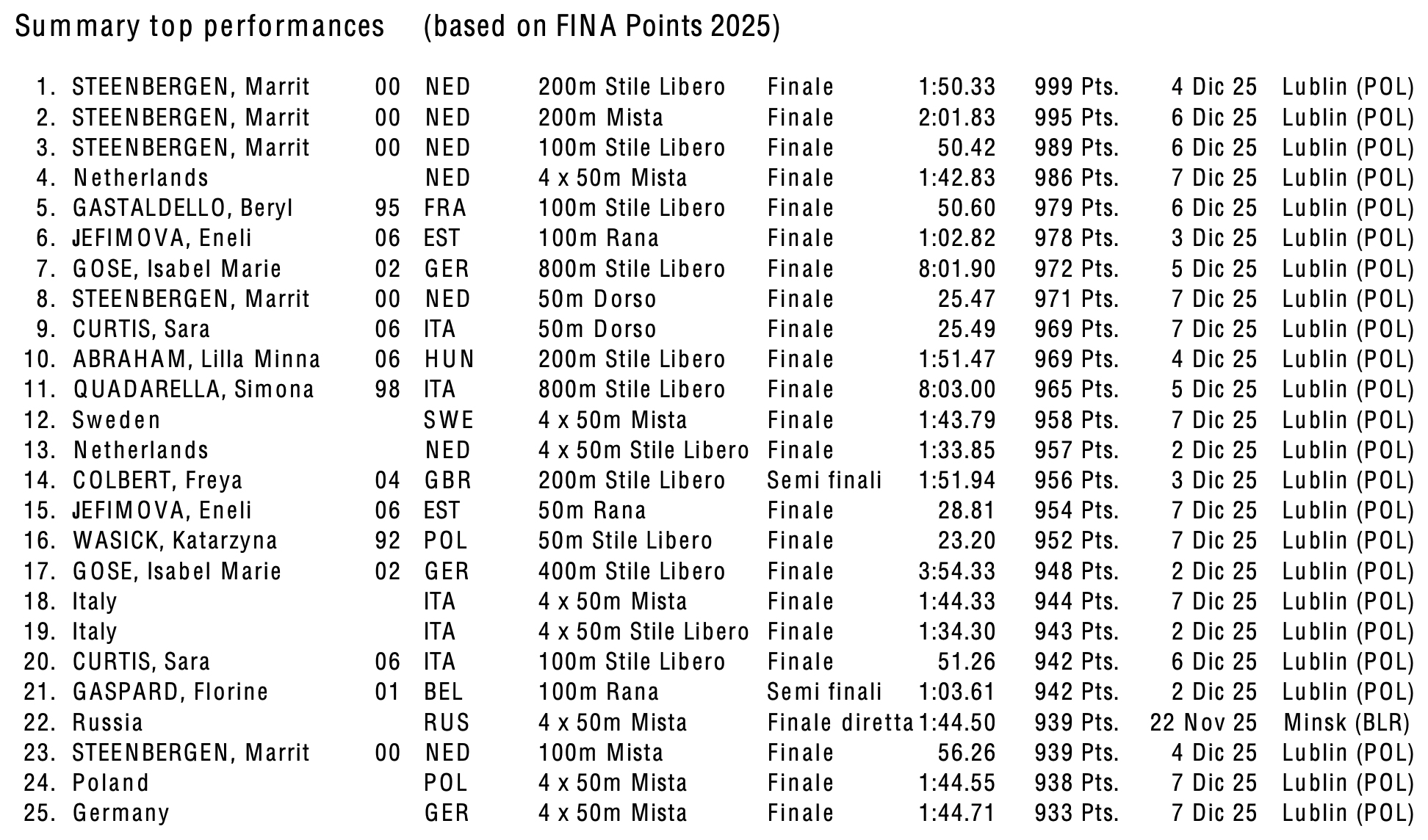 AZZURRI NELLA TOP TEN EUROPEA - V25 - (SWIMRANKINGS)