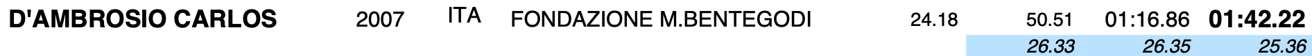 Da Verona si segnala la doppietta 100-200 stile libero di Carlos D’Ambrosio (Fondazione Bentegodi), grande assente ai recenti Assoluti di Riccione, ha siglato due crono di rilievo, nuotando rispettivamente 46.08 e 1.42.22, in seconda frazione di staffetta veloce e nella mista ha replicato al centesimo il medesimo crono nuotato nei 100 individuali (46.08). Dallo stesso campo gara in evidenza il record europeo giovanile della 4×200 stile libero femminile del Team Veneto con 3.39.04 con Il quartetto composto da Cristiana Stevanato (54.85), Irene Burato (55.08), Anna Gerolin (54.78) e Alessandra Mao (54.33), tutte autrici di frazioni di alto livello. Dal campo gara di Livorno Lisa Angiolini (Virtus Buonconvento) ha fatto registrare 1.04.83 nei 100 rana.