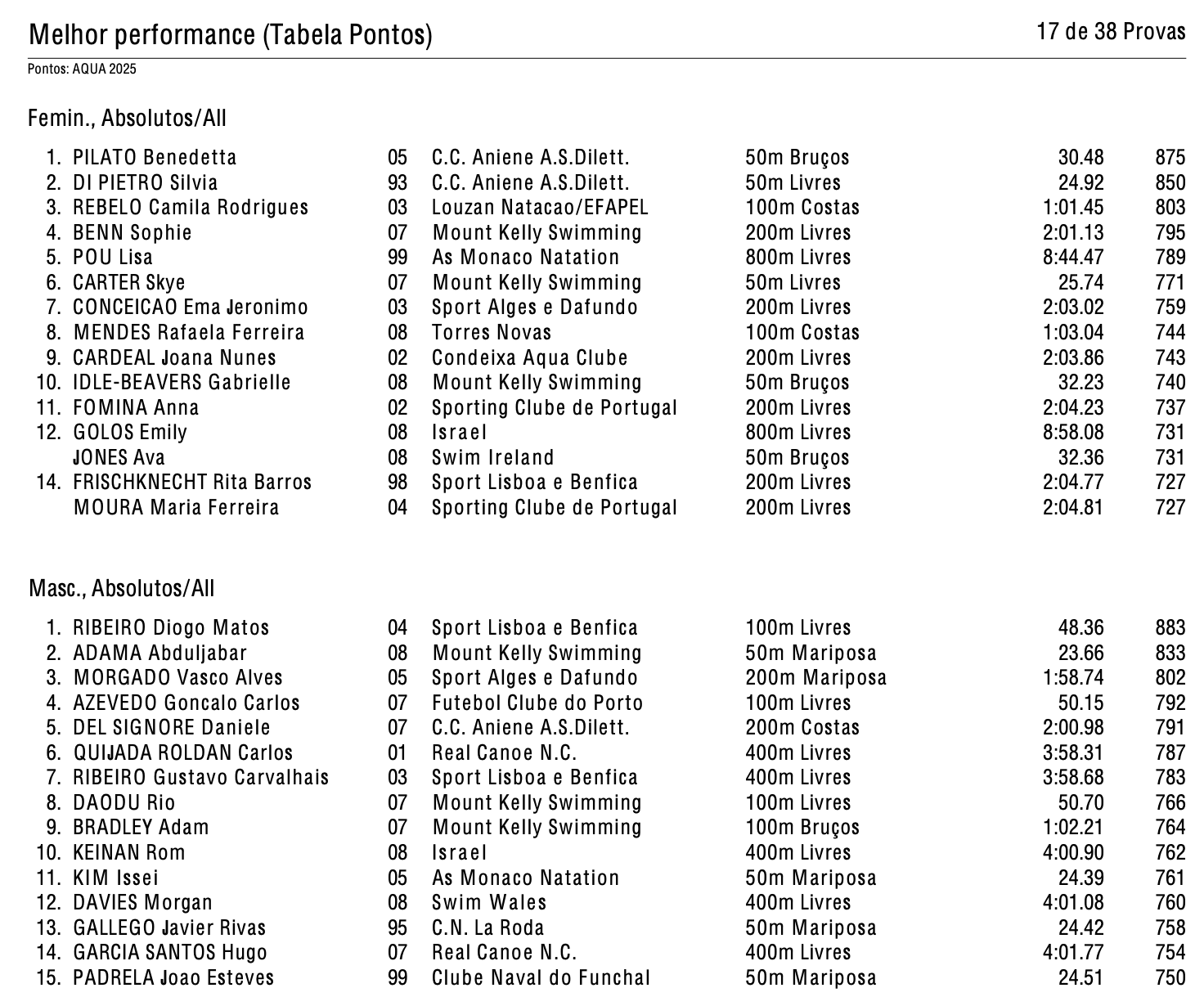 Sono disponibili i primi risultati dell’Arena Lisbon International Meeting 2026 in corso di svolgimento presso il Complesso Sportivo Nazionale di Jamor, a Lisbona, l'evento internazionale si conferma una competizione riconosciuta da European Aquatics e World Aquatics, valida come evento di qualificazione per i principali appuntamenti internazionali, inclusi i Campionati Europei di Parigi. L’edizione 2026 registra numeri significativi, con 769 atleti in gara in rappresentanza di 10 nazioni e 86 società, fra gli atleti in gara anche gli azzurri targati CC Aniene, Silvia Di Pietro, Benedetta Pilato e Daniele Del Signore.
