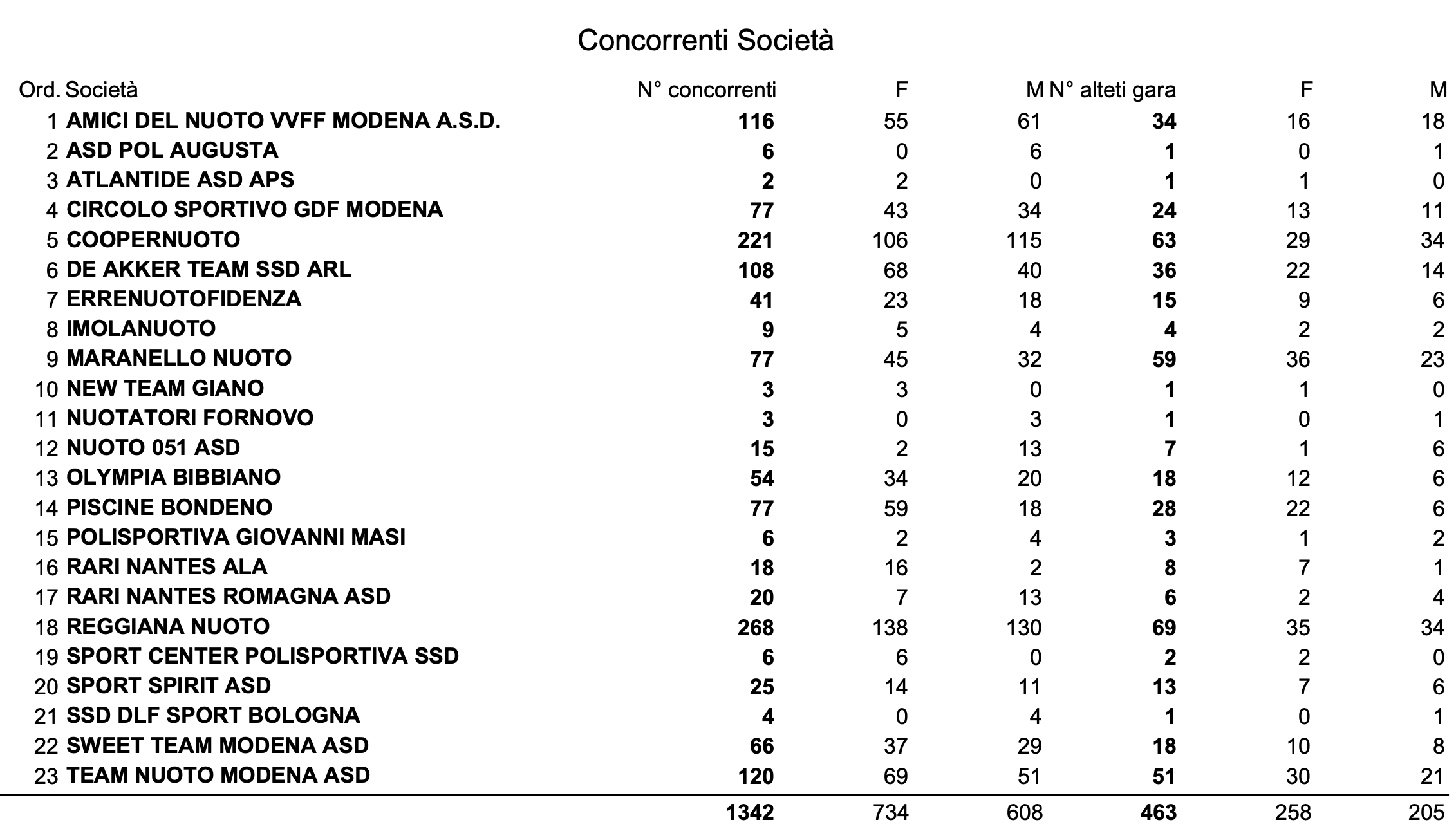 XIV Trofeo Città di Reggio Emilia. Startlist, Timing e società