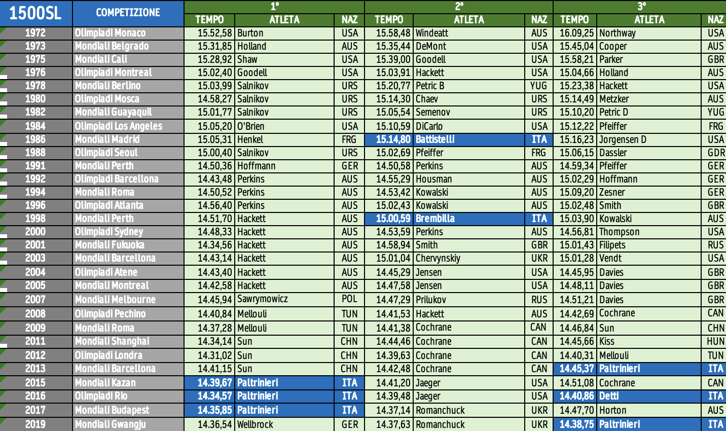 L’idea mi è venuta ripensando a una noiosa mattinata, durante i mondiali di nuoto del 2015, quando Sacchi e Mecarozzi tentarono di riempire il vuoto delle serie iniziali delle gare citando un’accozzaglia di numeri (tempi e podi – essenzialmente), recuperati su un excel scaricato dalla rete, prodotto da un certo “maxge”.