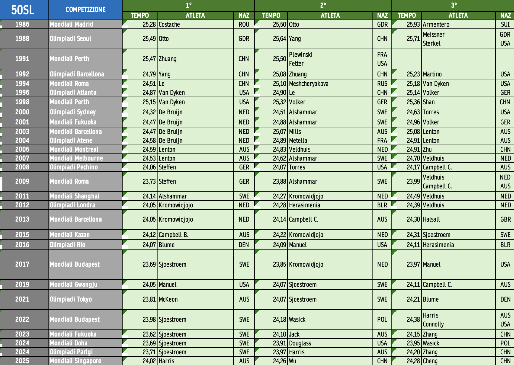 Tra World Aquatics, vecchie riviste e memorie personali: il piacere di perdersi tra genealogie, record e strane coincidenze del nuoto mondiale dal 1972 al 2025.